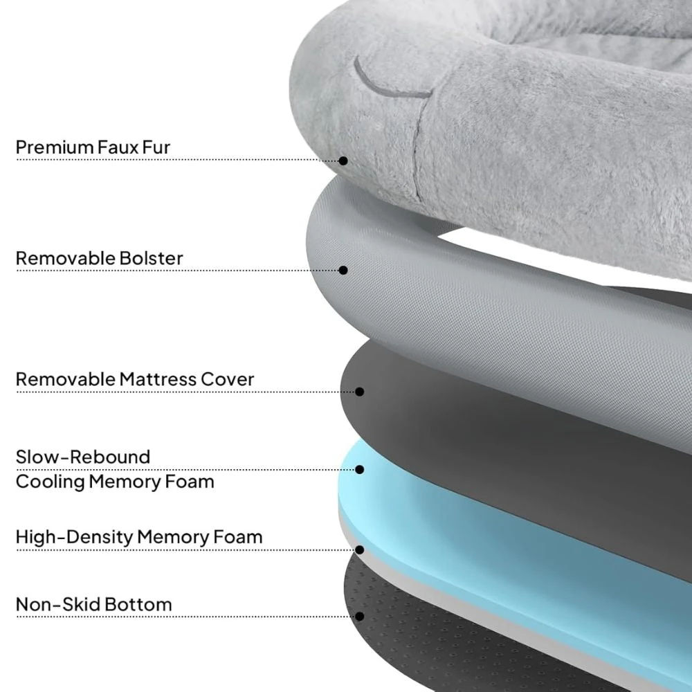 Comfort Plus Human Dog Bed, Light Grey