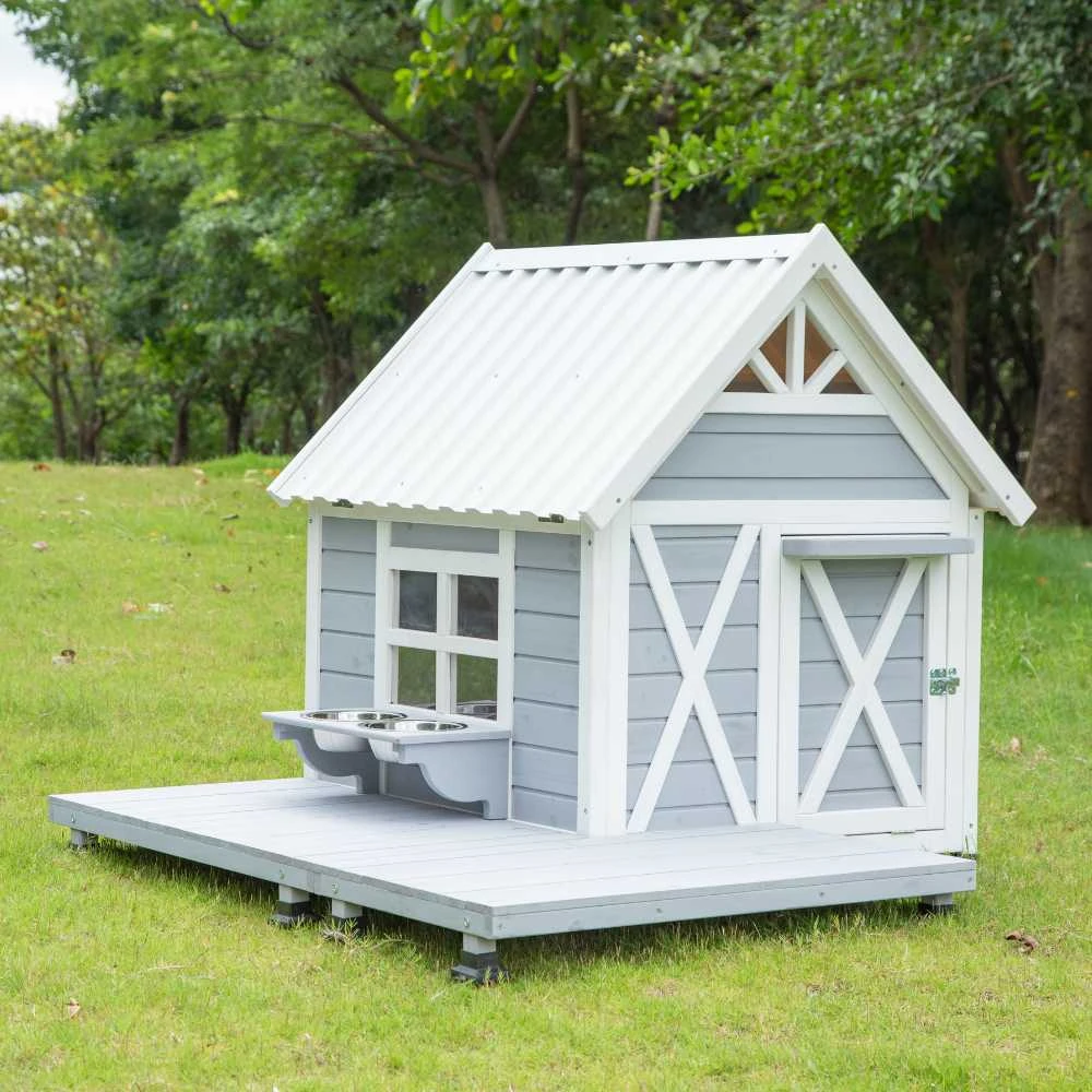 - Premium Wooden Construction: Crafted from high-quality timber, this dog house offers natural insulation properties that maintain comfortable temperatures throughout seasonal changes.